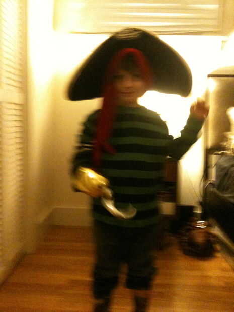 es una semana hasta Halloween y mi hijo todavía no había escogido su traje.Tenía que torcer su arrrrrrrrrrm pero tengo que accedió a ser un pirata. Mi hijo es todo un personaje no sólo que haría cualquier parche en el ojo viejo.Así nació la máscara p