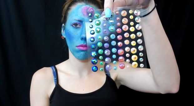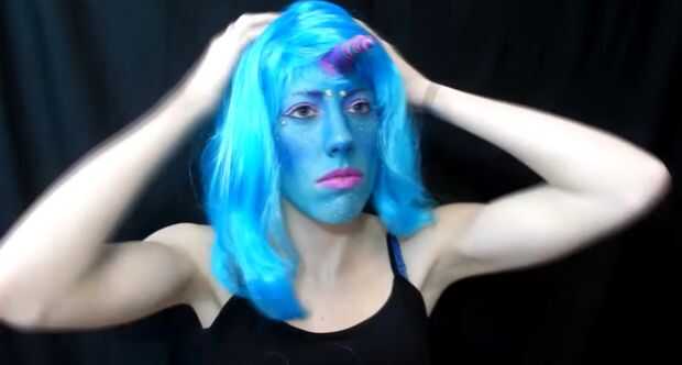 Añadí un toque rosa en medio de mis labios, poner en algunas joyas y añade una peluca azul.