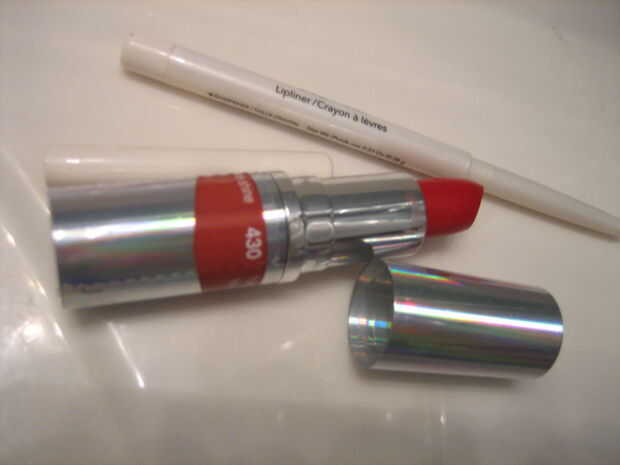 El trazador de líneas del labio fue complicado para mí. Terminé encontrando un trazador de líneas del labio claro, que era un protector de la vida. Lápiz de labios rojo sangre como un loco, y el trazador de líneas del labio claro lo mantuvo en su lugar.