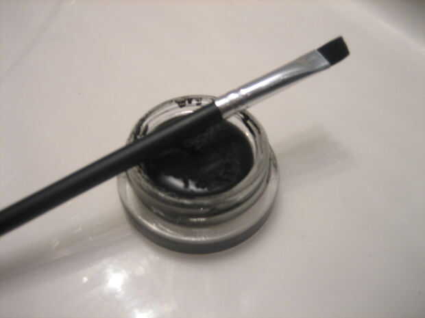 Fui a través de todos los tipos - lápiz, polvo, fieltro plumas con punta, trazador de líneas líquido... etc. La mayoría de estos eran muy difíciles de trabajar con. Finalmente opté por un trazador de líneas base de crema que viene en un lindo tarrito. Vino con este cepillo poco rechoncho que era más frustrante que útil, así que compré un cepillo de línea agradable en la farmacia por la calle.