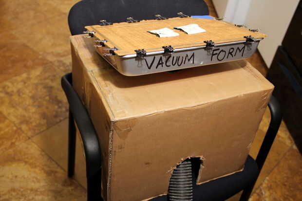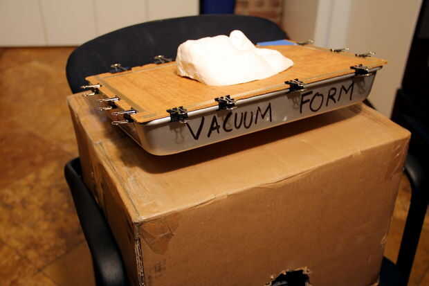 - Coloque el marco y el plástico sobre su cara positiva y encienda la aspiradora. La hoja de plástico se forma a la cara.