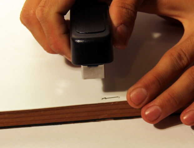 - Grapa plástico al marco. Que tenga que golpear duro para hacer que las grapas en la madera.