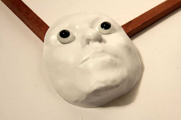 - Cortar el plástico a la forma. Si usted tiene ojos de cristal, este es un buen momento para cinta en y tomar fotos Super espeluznantes.
