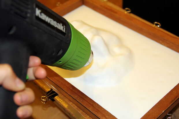 - Debe ser bastante bueno ya, pero es útil usar un calor del arma (con el vacío aún en) para hacer el plástico se ajustan mejor a los detalles: los hoyos de los ojos, nariz, labios.