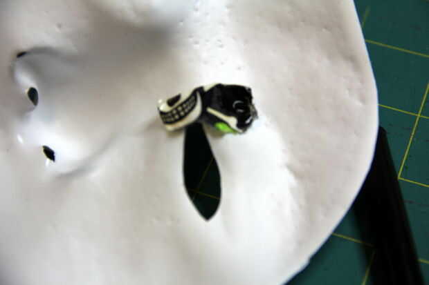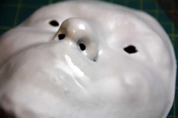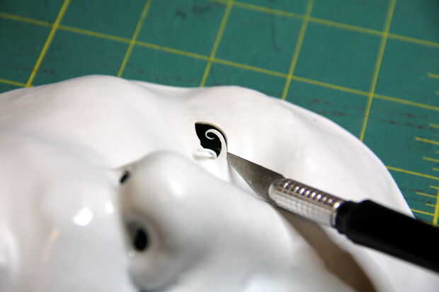 Corte los orificios nasales, también; orificios de respiración.