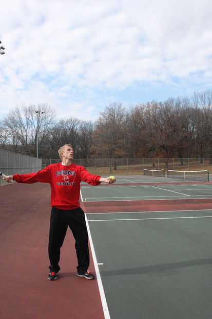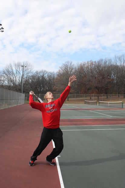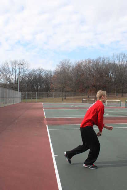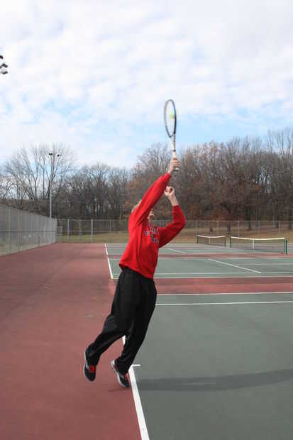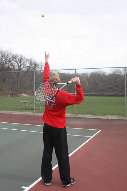 Una vez que acaba el swing hacia abajo, entonces practicar levantando su raqueta en la posición que simultáneamente están lanzando la bola hacia arriba.