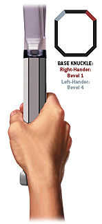 -Una empuñadura continental se describe mejor como sosteniendo la raqueta perpendicular al suelo y sosteniéndolo con el dedo de puntero a lo largo el primer bisel de la raqueta.