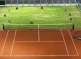Rebotar la pelota 2 a 4 veces para tener una idea de la pelota y la textura del corte como texturas de corte pueden variar (ex: arcilla, césped, etc.)