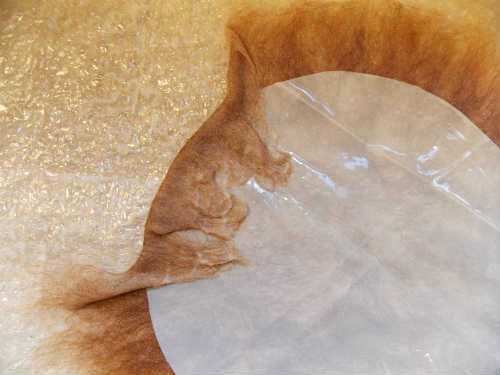Con mucho cuidado, retire a la malla. Algunos de la fibra pueden han trabajado su manera a través suavemente quitar. Ahora, poner el otro abrigo de burbuja sobre su barco y voltee todo el asunto.