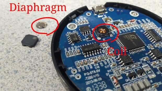 Con una herramienta afilada (realmente utilicé mis uñas), retire el diafragma por lo que no hay nada para el campo magnético para moverse. (Ver imagen)