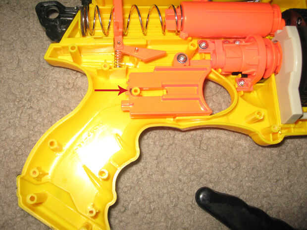 4. cortar un pequeño trozo de almohadilla para colocar en el montaje del gatillo (como se muestra)