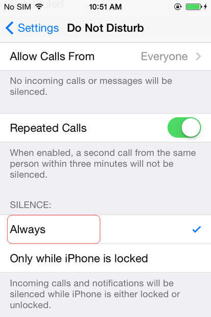Volver a la interfaz principal de no molestar y desplácese hacia abajo hasta encontrar la opción. Compruebe siempre si quieres silenciar el iPhone incluso cuando usted está usando o sólo mientras el iPhone está bloqueado si no vas a utilizar el iPhone mientras se trabaja.
