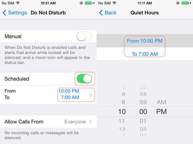 Esta opción es útil para las personas que quieren silenciar el iPhone durante un determinado período. Cuando los usuarios Pulse programar, puede elegir un rango de tiempo para el silencio.