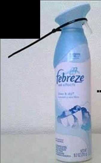 la idea es simple. se necesita una tira de cremallera y una lata de Febreze. cuando su listo para el "ataque" simplemente tire la tira firmemente y su ir.