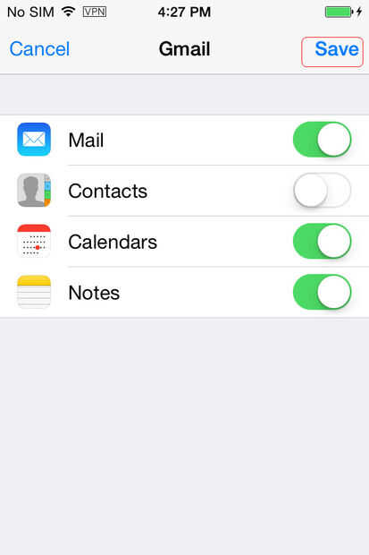 Después de verificar tu cuenta de Google, tienes varias opciones. Calendarios on de toque y toque guardar en la esquina superior derecha. Después de eso, ir a tu aplicación de calendario del iPhone, y calendarios de Google comenzará a sincronizar con el iPhone app de calendario.