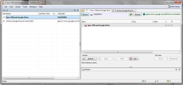 El primer trabajo mostrado se sincroniza la unidad USB con Google Drive.