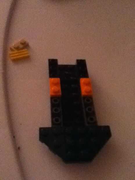 Fije las piezas naranja en los lados de la mediados de los cuerpos y el ala delantera en la parte delantera. (duh).