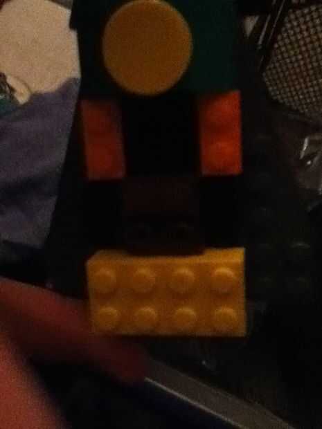 Agregar un pedazo de marrón que se pega hacia arriba detrás de los dos bloques azules.