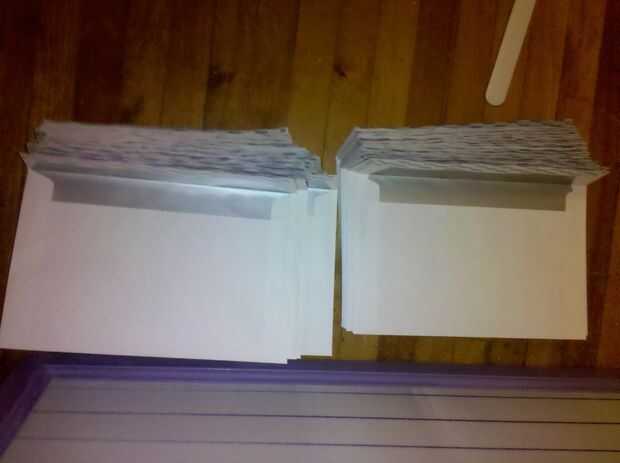 En el lado positivo, mis sobres de grapas - llano sobres blancos, no lujo acabado lino o cartulina de pedido especial - y los trazadores de líneas están hechos de papel de Walmart. Pero poner los dos juntos, y esos sobres empiezan a parecerse a algo mucho más caro de lo que realmente son!