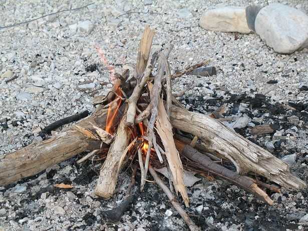 Después de elegir su sitio, es necesario marcar donde estarán las áreas. Puede seguir adelante y crear su fogón. Mañana, vamos a crear su refugio, tan sólo marca el área donde usted va a dormir.