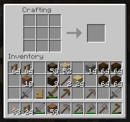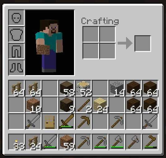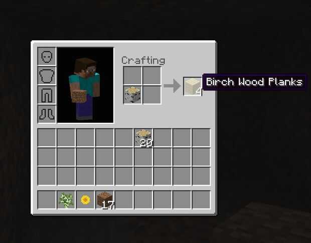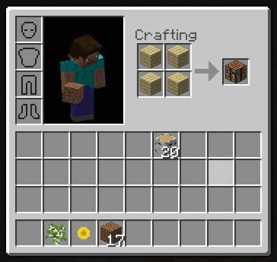 - Poner una pieza de madera y esto creará tablas de madera - 1 bloque de madera = 4 planchas