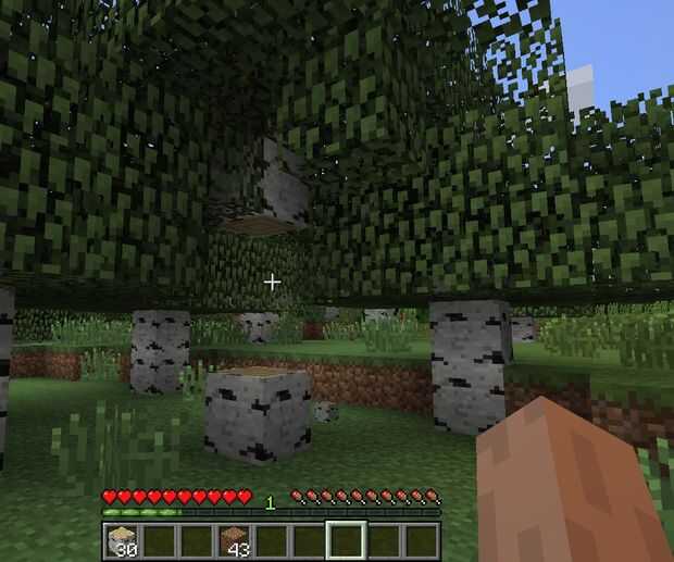 * Consejo: A veces los árboles son demasiado altos para romper todos los bloques desde el suelo. Una cosa que puedes hacer es saltar el primer bloque (abajo) y romper los dos encima de él. Entonces puede colocar en ese bloque y ver y seguir a romper todos los bloques del tronco. Cuando terminaste, salto y rompan el bloque estaban parados. Si se rompe toda la madera del árbol, las hojas poco a poco desaparecerá y puede caer árboles para plantar e incluso manzanas!