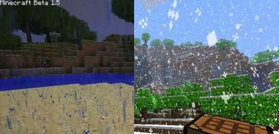 Hay dos tipos de clima en Minecraft.Rain,and nieve. Lluvia ocurre en biomas forestal de biomes(aka areas) y normal(Taiga). Nieve sucede en biomas nevados, por supuesto.