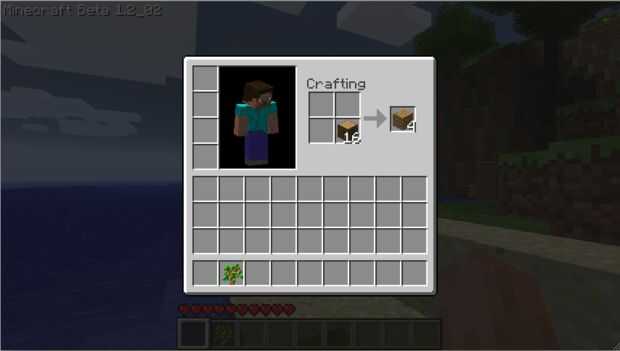 Pulse la tecla "e" en su teclado para abrir tu inventario. Arrastrar la madera en cualquier lugar en el cuadrado de 2 x 2 de las cajas en la parte superior derecha. Un tipo diferente de bloqueo aparecerá en la tabla de 1 x 1, con el número 4 al lado de él. Esto significa que un bloque de madera le dará 4 wood(planks) refinado.