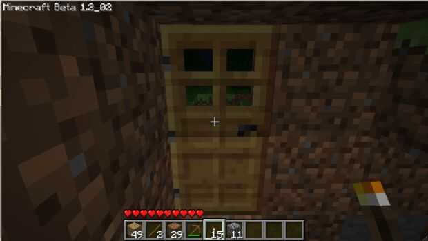 El sol debe ser ajuste por ahora, y no desea que los monstruos a entrar en su espacio agradable, así que usted querrá hacer una puerta. Organizar su madera como la foto 2 y lo dejó donde quieras la puerta hacia el ser. Asegúrese de que su casa está sellada, aunque (Foto 3)