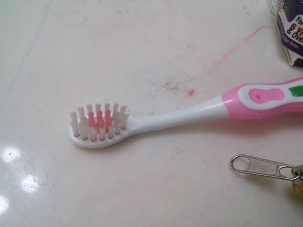 Cepillo de dientes de un niño es pequeño y fácil lleno.