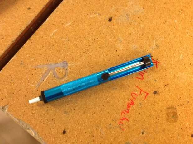 La bomba de desoldar funciona semejantemente a la mecha para desoldar. La bomba se utiliza mejor para tiradas más grandes de la soldadura de la placa de circuito.