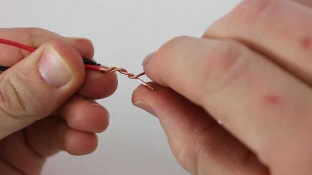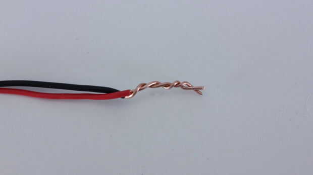 Tomar dos cables y el aislamiento de los extremos de la tira. Usted quiere que haya aproximadamente una pulgada de metal expuesto de cada cable. Entonces tuerza los cables firmemente.