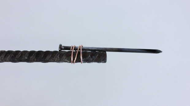 Un fuego de leña es mucho más caliente que una vela o un encendedor. Así que tienes que utilizar una herramienta que le permite trabajar a una distancia segura. Para hacer esto usted puede usar ya sea un alambre largo o puede conectar el soldador al extremo de una varilla no combustible como un pedazo de varilla de acero.
