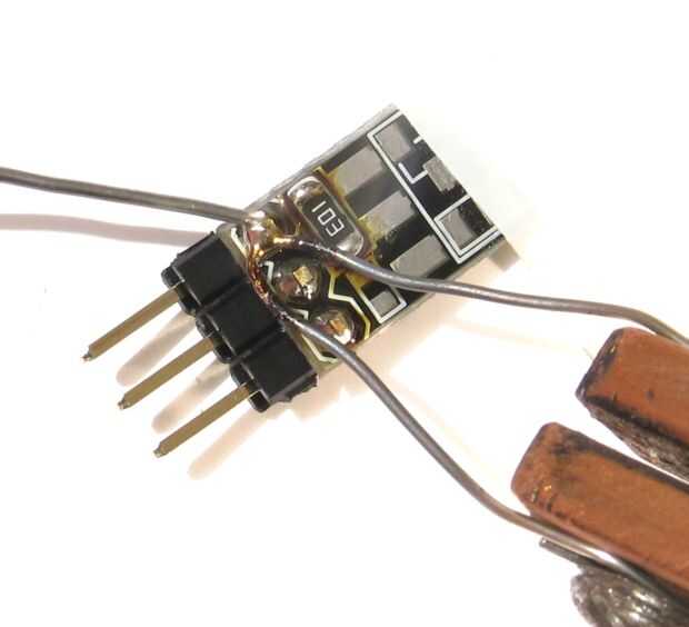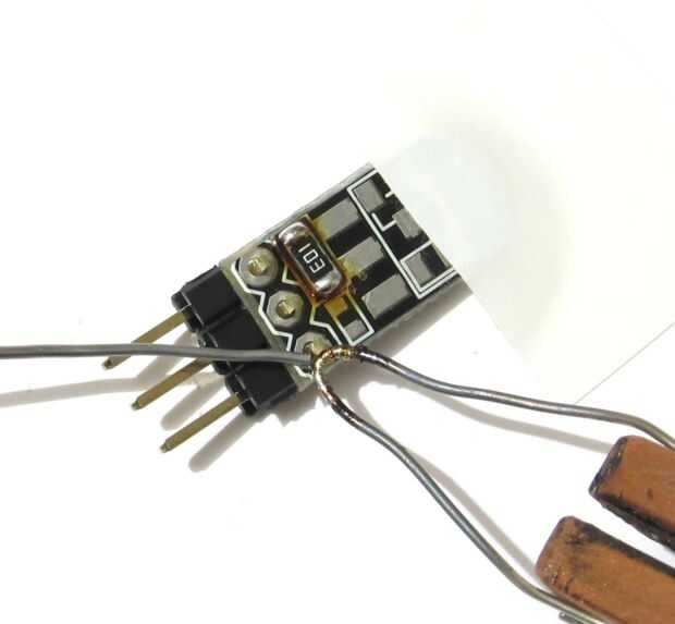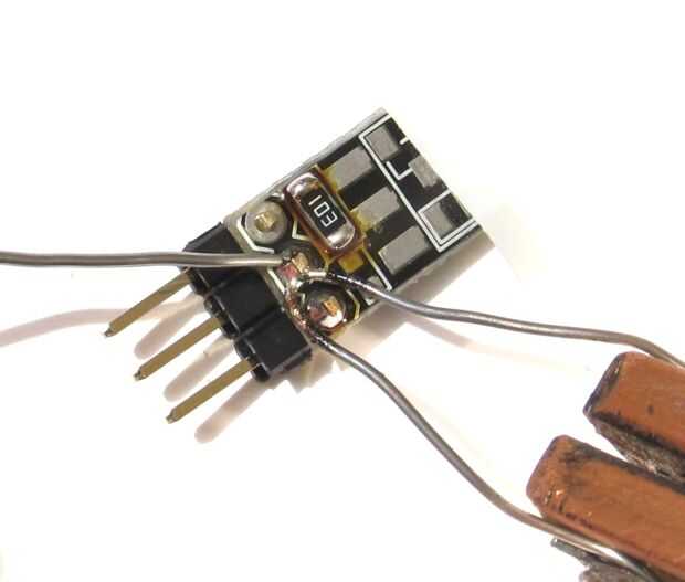 para usar componentes SMD en breadboards, simplemente uso 0,1" espaciadas jefes masculinos, cortar un trozo de dos patillas y soldar componente SMD entre las dos clavijas en el extremo corto de la cabecera.Esto funciona bien con componentes de tamaño