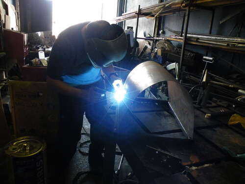 Una vez cortado a la longitud correcta encontramos un tubo grande y utiliza que como una forma de tirar el acero en una parábola muy precisa de la forma mejor adecuada para maximizar la reflexión del calor. Verdad OK eso fue un golpe de suerte, sólo lo dobló hasta que ambos lados encajaría en cualquier lado del bastidor.