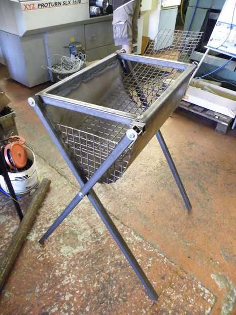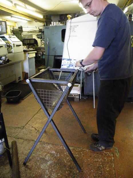 Para fijar las patas la que encontramos algunos muy práctico M8 espigas t tuercas y pernos, las tuercas eran perfectos ya que tenían grandes bridas conectados y estos ajuste perfectamente en los extremos de la sección de cuadro de 1". Cuatro virar soldaduras más adelante y había una perfecta avellanados con tuerca para unir las piernas.