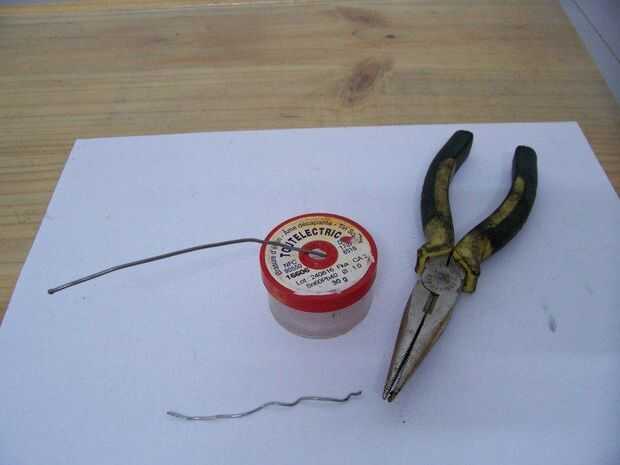 Corte un trozo de soldadura de plomo con unos alicates.