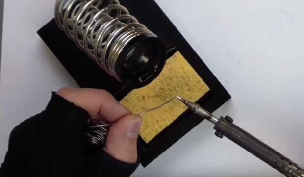 Aplicar soldadura a la punta y dejar fluir todo, luego limpie con una esponja húmeda.