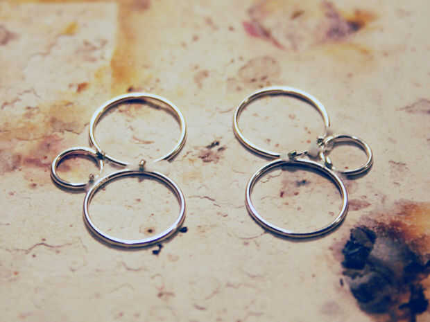 Colocar sus anillos de plata o alambre sobre el ladrillo de horno y empuje las piezas que desea soldar entre sí hasta que estás tocando. A veces con sus pinzas o selección para mover cosas de la soldadura puede ser útil.