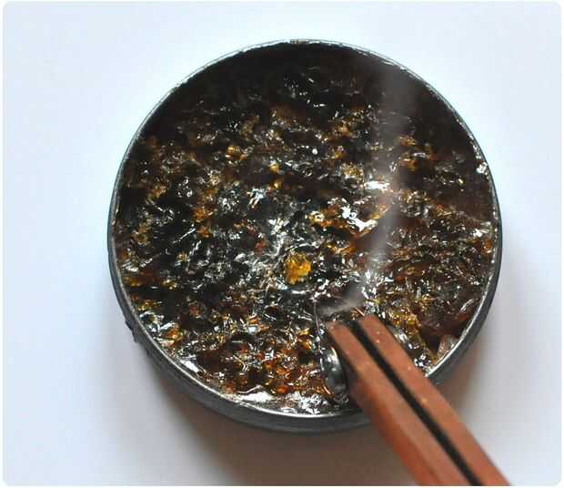 Encender el soldador y después del calentamiento, moje la punta de 2-3 segundos en la resina limpiarlo de impurezas.