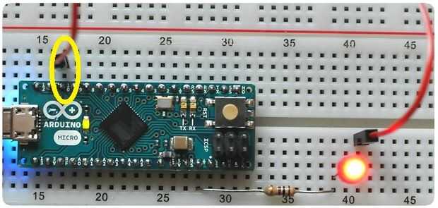 Ahora es el momento para ver si los pasadores se sueldan correctamente. Verificación se hará utilizando el IDE de Arduino entorno USB cable, LED y resistencia.