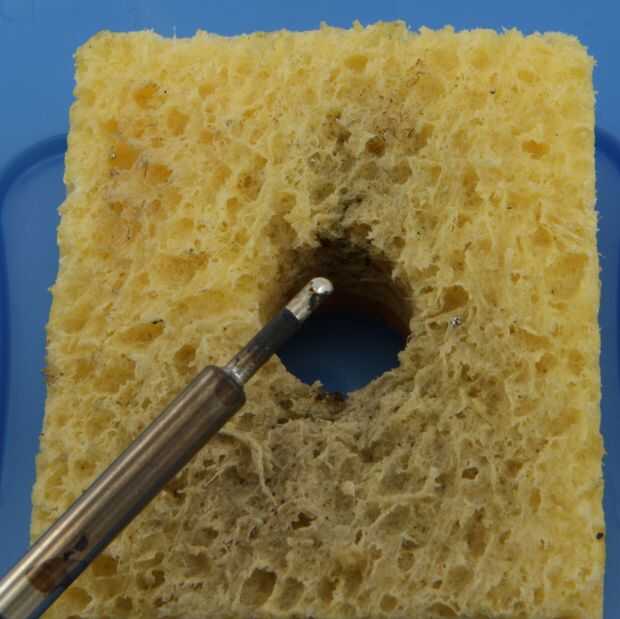 Empezar por la limpieza, estañado y luego limpiar la punta otra vez. Esto se asegurará de que está listo para funcionar, con una superficie de «pura» que transferirá calor rápida y uniformemente. Aplicar una buena cantidad de soldadura en la punta para evitar oxidación y colóquelo en el soporte mientras alistamos el resto de los pasos.