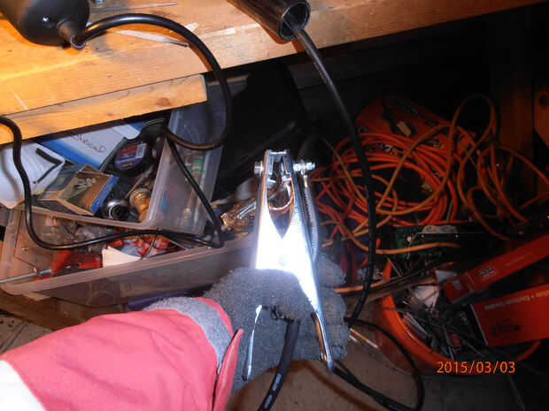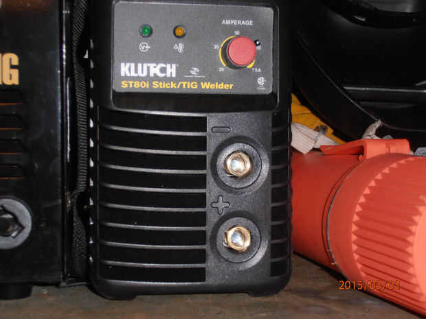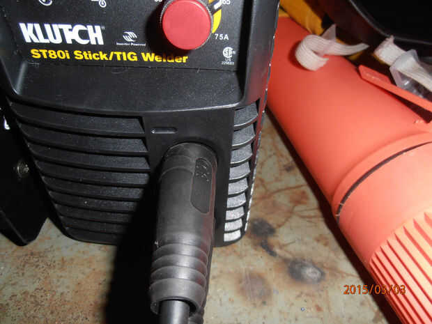 La máquina de soldadura que estoy usando para este tutorial es Klutch ST80i inversor TIG/Stick soldador de herramienta norte. El soldador se vende por $180 y se enchufa en un tomacorriente de 110/120 voltios (enchufe estándar de pared de Estados Unidos). A pesar de su tamaño y el tipo de voltaje que se conecta al, esta soldadora tiene un gran poder! Recomiendo este soldador para cualquier principiante o profesional para uso doméstico o tienda. Si nos fijamos en la parte delantera de la máquina, usted notará dos tomas DINSE de 25mm. Estas son donde su aguijón (sostenedor de electrodo) y la pinza de masa Conecte la soldadora. Primero conecte la soldadora en, pero no enciende. Tomar el cable Stinger y conecte el extremo con el conector DINSE en el conector marcado con un "+". Este es el zócalo en la parte inferior. Gire el conector firmemente. A continuación, tomar la pinza de masa y pinza para su soldadura tabla o pieza de trabajo. Entonces, la DINSE enchufe en el extremo opuesto del cable en el enchufe de tornillo marcado con un "-" o la superior. El soldador está configurado ahora para soldar en polaridad inversa DC o DC electrodo positivo, también marcado como DCEP. Esta es una de las ventajas de la soldadura del palillo, es tan simple!