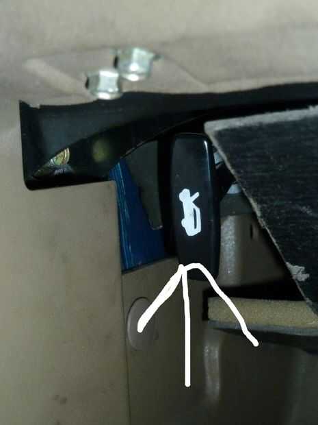 Localizar el tirón de la tapa en este ejemplo en espacio del pasajero y luego ir y apuntalar la tapa como se muestra arriba
