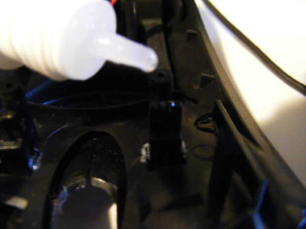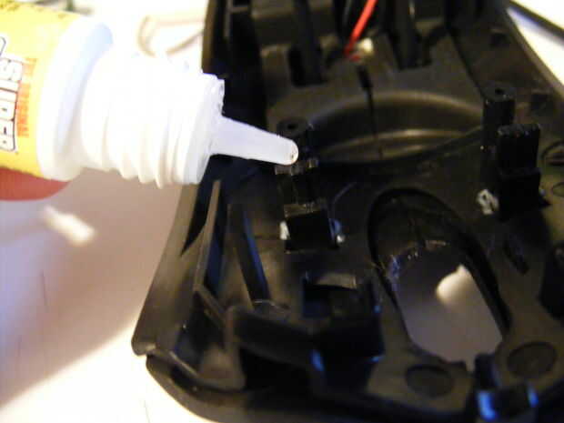 ok aquí tienen algunas fotos para mostrar donde viste de mayor clickage. Todo lo que necesitas es poner una sola gota de "Super Glue" en los surcos de desgaste. Tenga cuidado de no para usar demasiado. Una gota es que suficiente. Deje que se seque. Sí, déjalo secar. Si usted monta antes de secado usted ladrillos. Sí usted conseguirá pegamento en el micro interruptor y así puede tirarla hacia fuera si eso sucede.