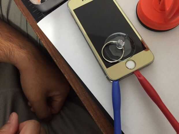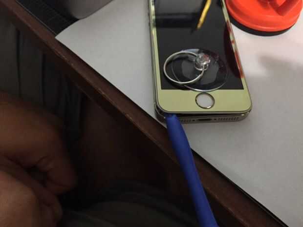 Después de levantar la pantalla frontal, utilice la herramienta pequeña palanca palanca de un lado y su forma de trabajo hasta que usted puede levantar la pantalla abierta.