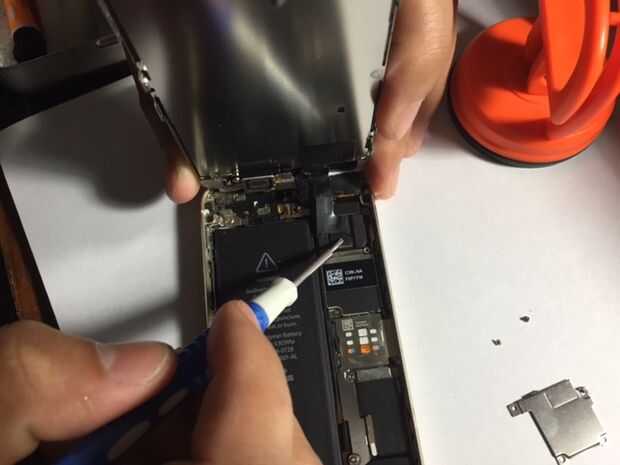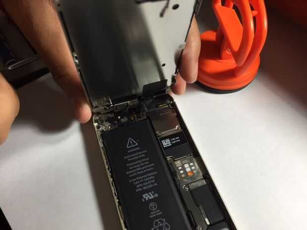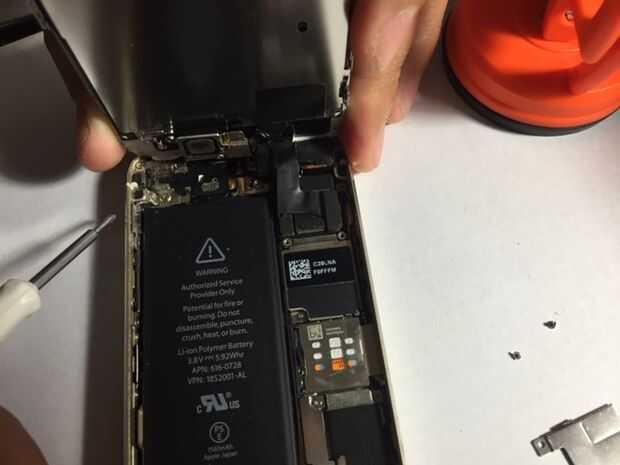 De la imagen te darás cuenta que allí son tres cable conectar a la placa base del teléfono. Retire cada una de ella de derecha a izquierda. Una vez que haya quitado tres cables, la pantalla frontal será libertada.