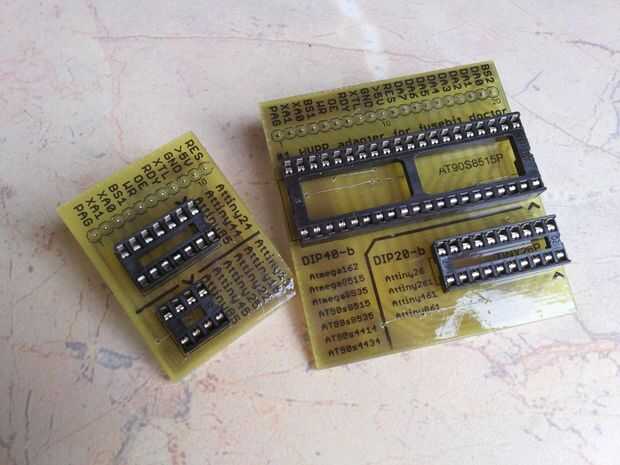 Hay tres espacios a bordo, para más común AVR, pines compatibles con: procesadores compatibles DIP20 Attiny2313 y Atmega8 DIP28 y DIP40 Atmega32.