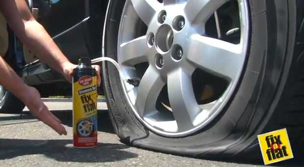 Paso 4: Pulse el botón sobre el puede liberar el contenido de la lata en el neumático hasta que está completamente inflada. Esto puede tardar desde unos segundos a un minuto.