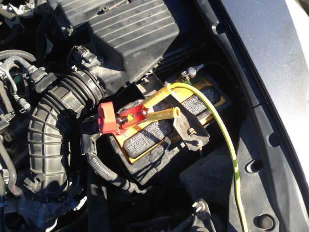 Paso 5: Conecte la abrazadera del cable de puente rojo/amarillo al terminal positivo (tapa roja) de la batería del coche no funciona.